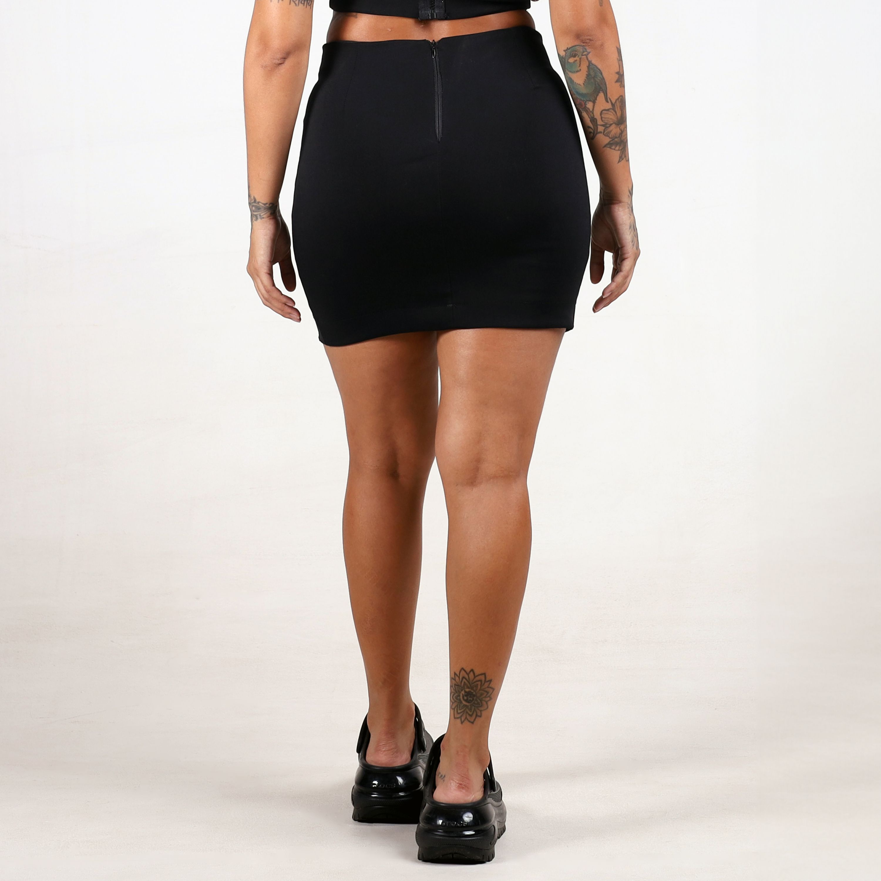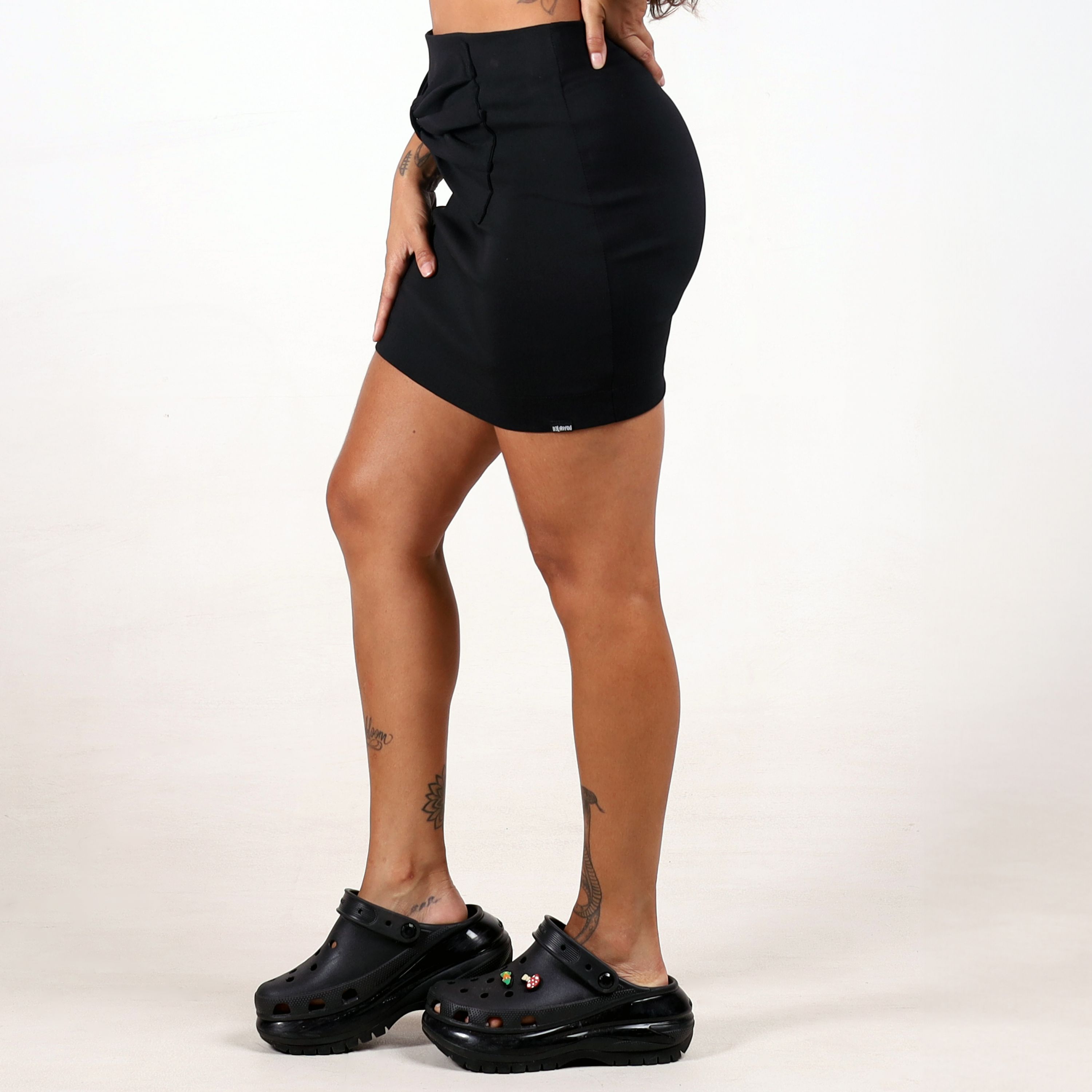 Saia Midi Fenda Babado Visco Black