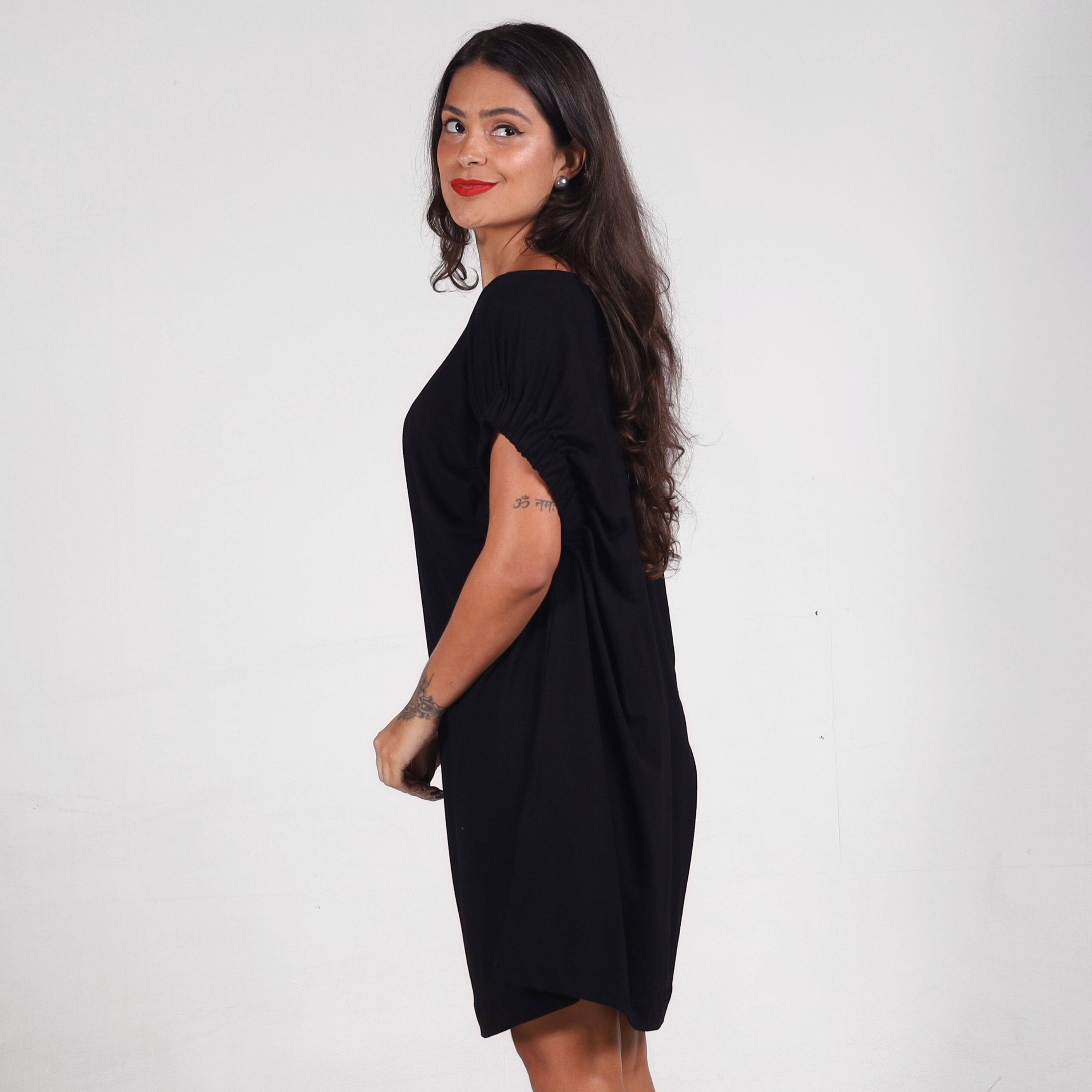 Com uma silhueta ampla e toque minimalista, o Vestido Musa Over é a união perfeita entre conforto e atitude. Feito em tecido leve e fluido, ele possui caimento solto e mangas com detalhe franzido que adicionam charme sem abrir mão da praticidade. O decote amplo valoriza o colo de forma sutil e elegante, enquanto o comprimento curto traz uma pegada moderna e descomplicada. Ideal para quem ama se sentir livre, estilosa e autêntica — seja no dia a dia ou em produções mais ousadas com acessórios. Uma peça-curinga que fala por si só.
