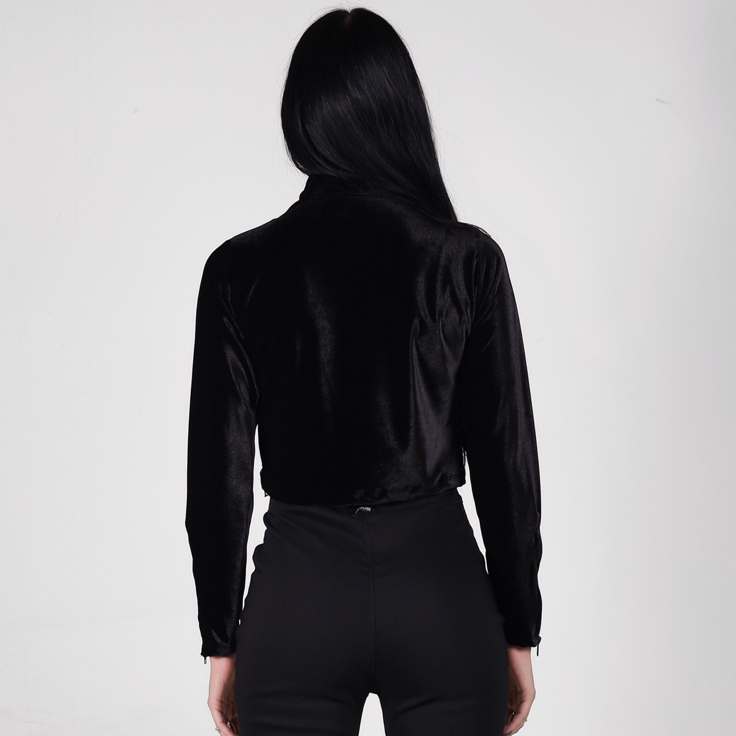 Produzida em veludo molhado, de toque macio e confortável, essa peça traz sofisticação e modernidade em cada detalhe. Com gola alta clássica, modelagem ajustada ao corpo e zíperes nas mangas, ela equilibra elegância e atitude, tornando-se um item-chave para looks poderosos.
