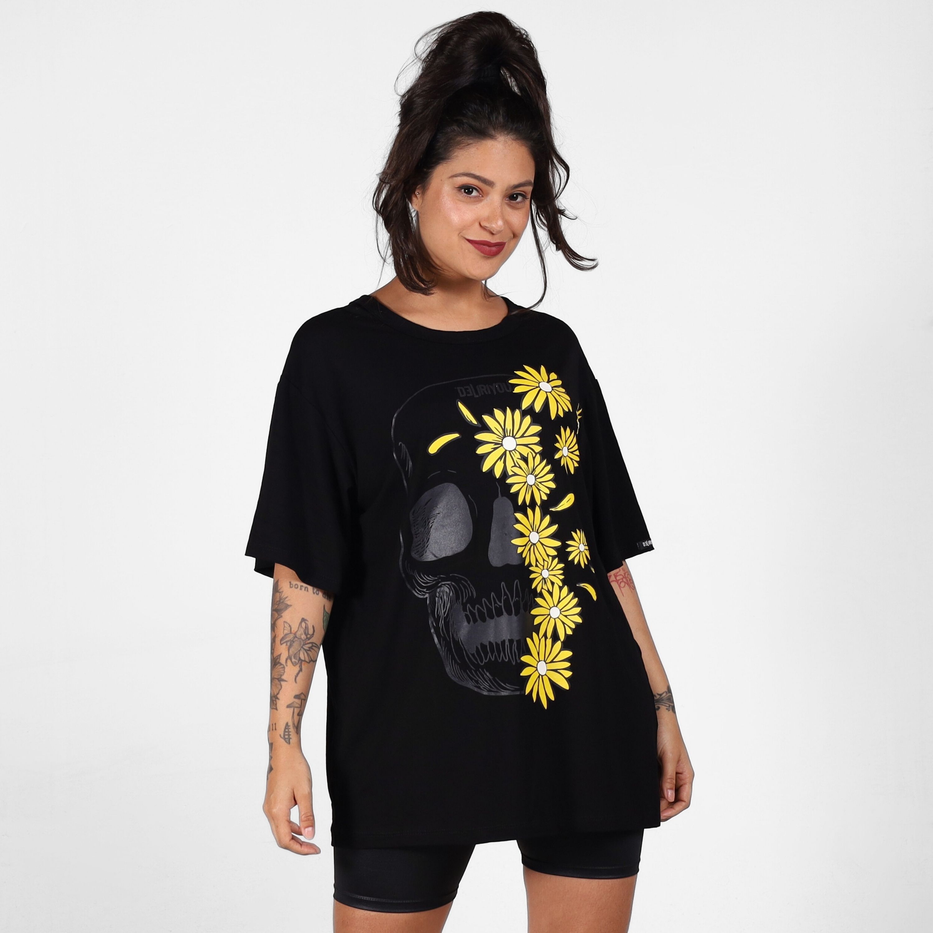 A Blusa Margarida Skull combina o peso do dark com a leveza do flower power. Com modelagem ampla e tecido confortável, a peça traz estampa imponente de caveira contrastando com margaridas amarelas que iluminam o visual. Uma mistura de ousadia e delicadeza, perfeita para quem curte expressar estilo autêntico e alternativo. Use com shorts, calça cargo ou saia para criar looks que transitam do urbano ao rocker sem esforço.