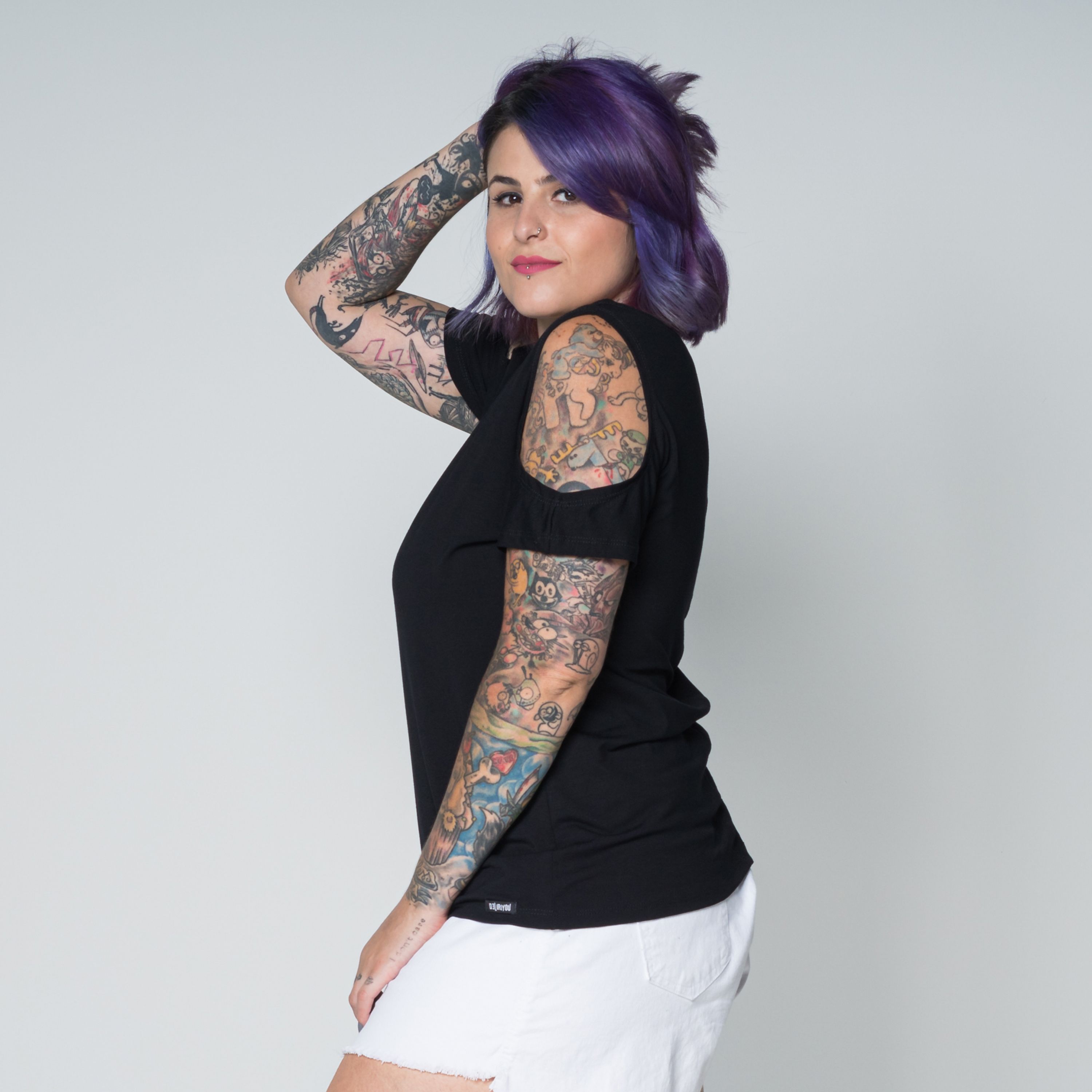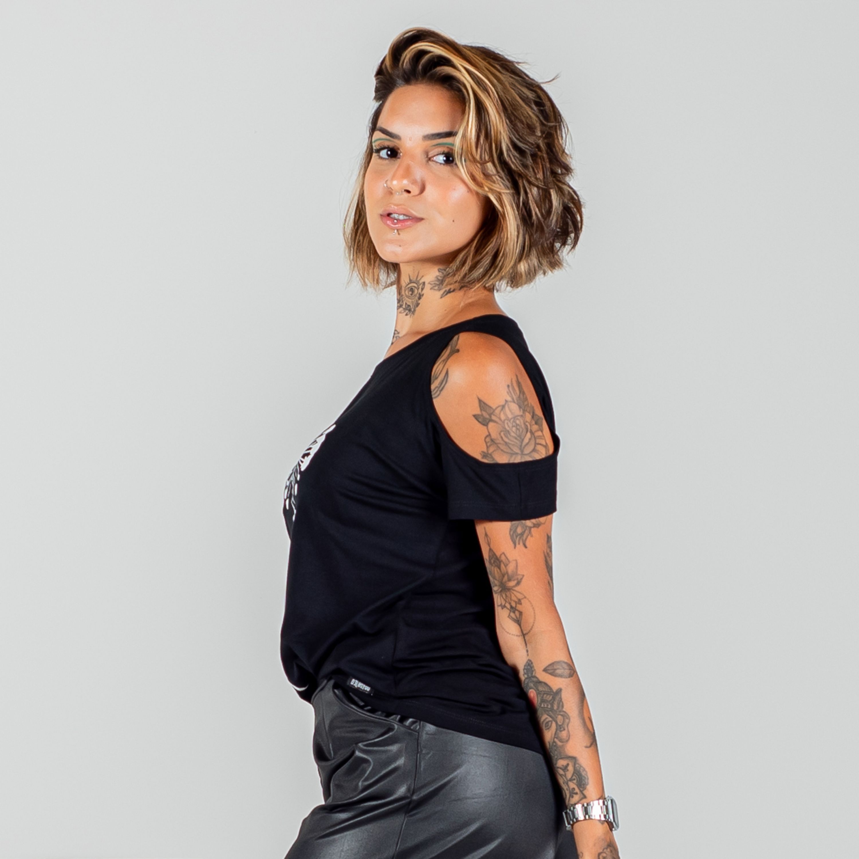Blusa Baby Look Preta Cirrê Casual